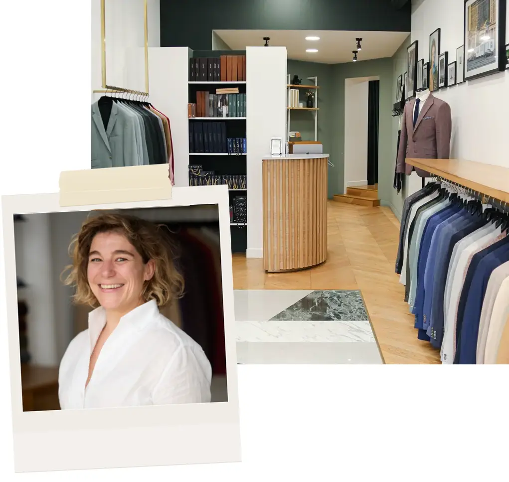Dans notre boutique à Paris, Charlotte vous accompagne à chaque étape pour créer un costume unique, élégant et parfaitement adapte à votre mariage.
