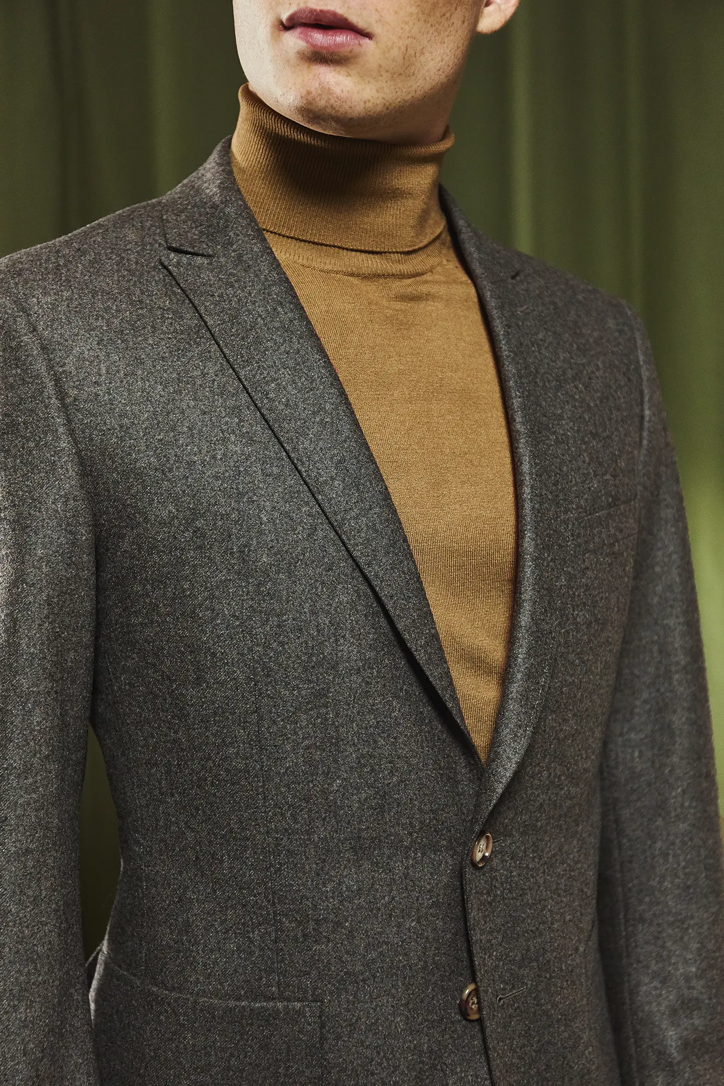 Costume 2 pièces sur mesure avec une veste à col pointe, 2 boutons, 2 poches plaquées.