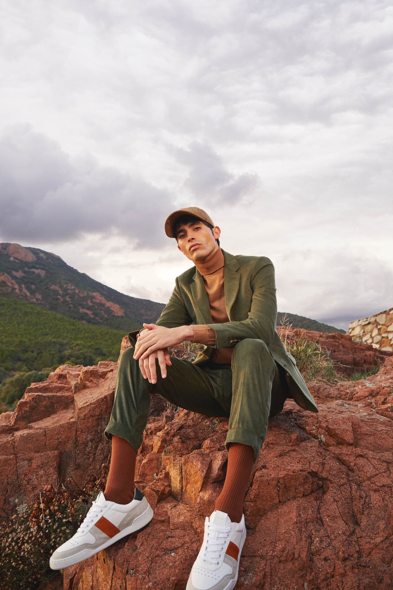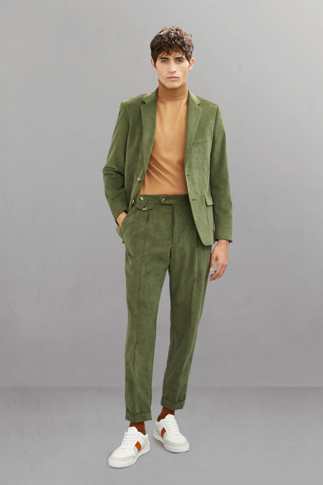 Costume 2 pièces sur mesure avec une veste à col cran ouvert, 2 boutons, 2 poches plaquées à rabats et un pantalon à doubles pinces et revers – 1040€
