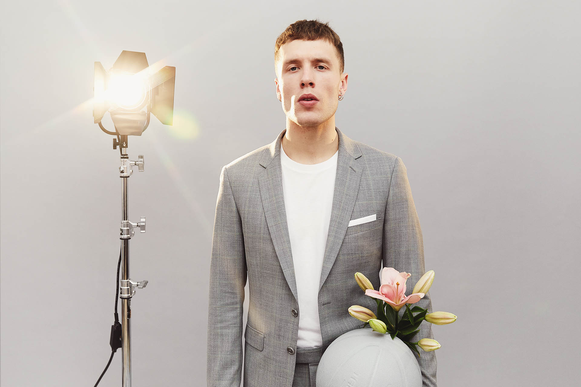 Costume 2 pièces sur mesure avec une veste à col droit, 2 boutons et 2 poches droites à rabats.