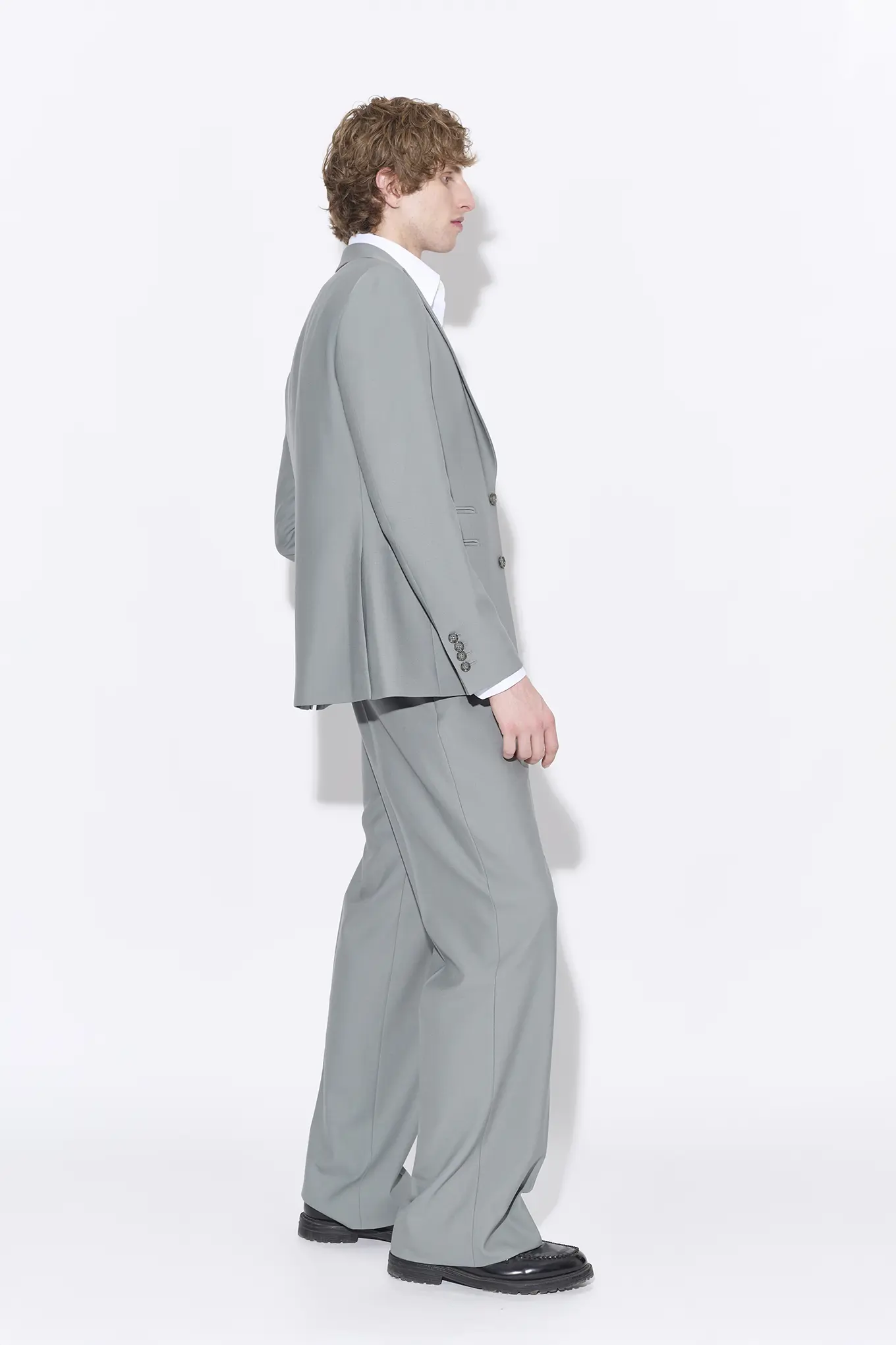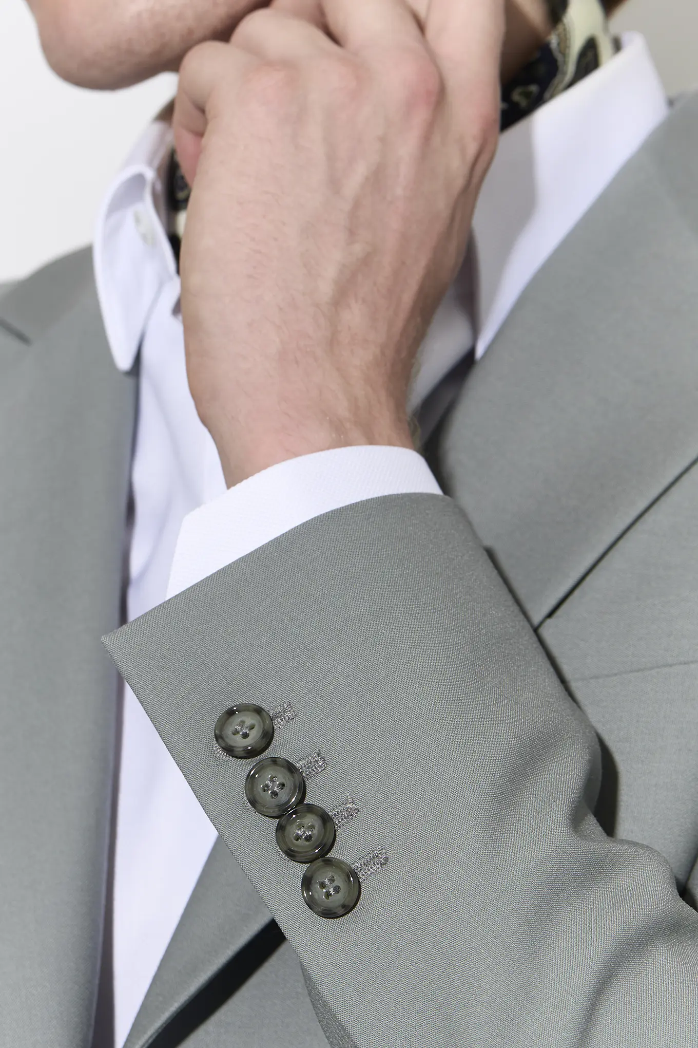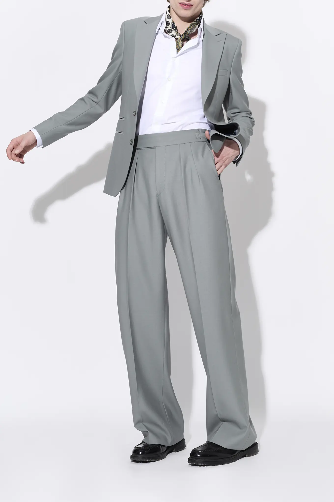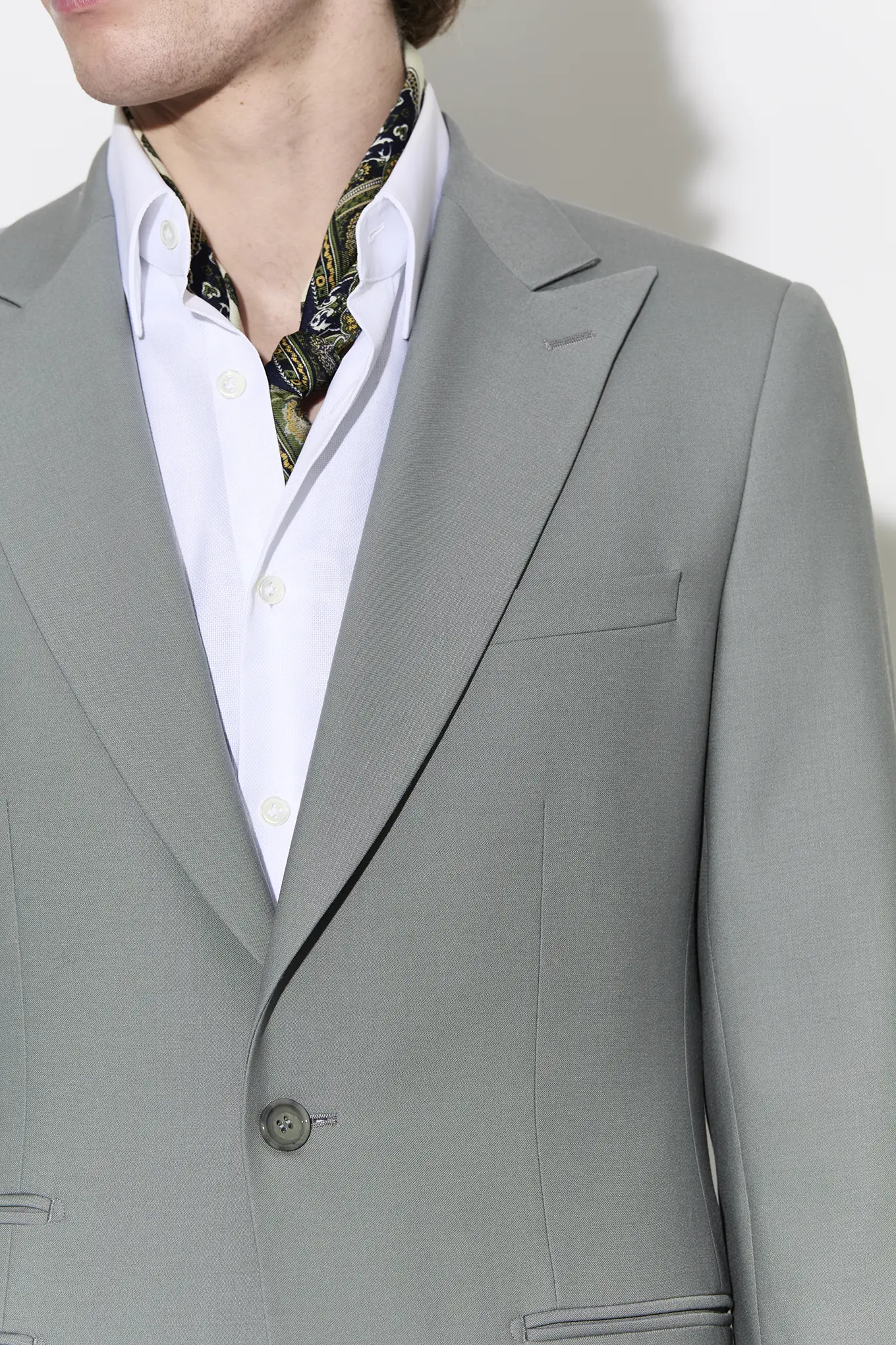 Costume 2 pièces en serge vert de gris pastel sur mesure – 1090€