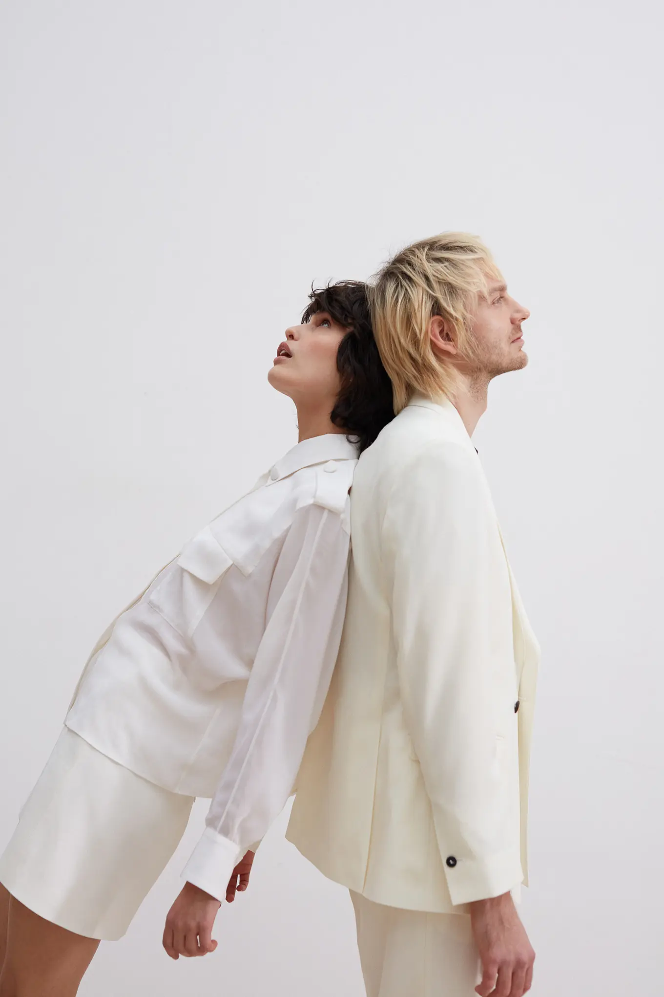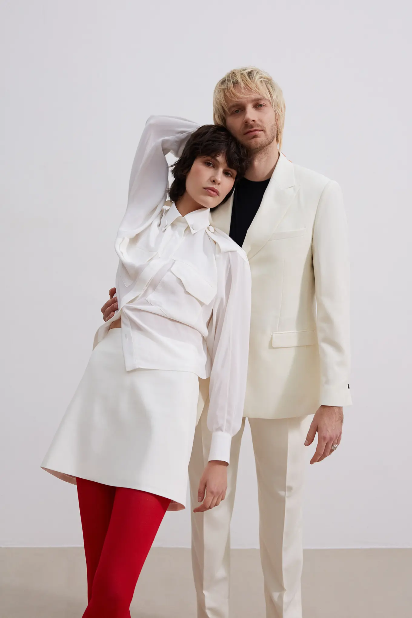 Costume croisé en sergé ivoire sur mesure – 1090 €