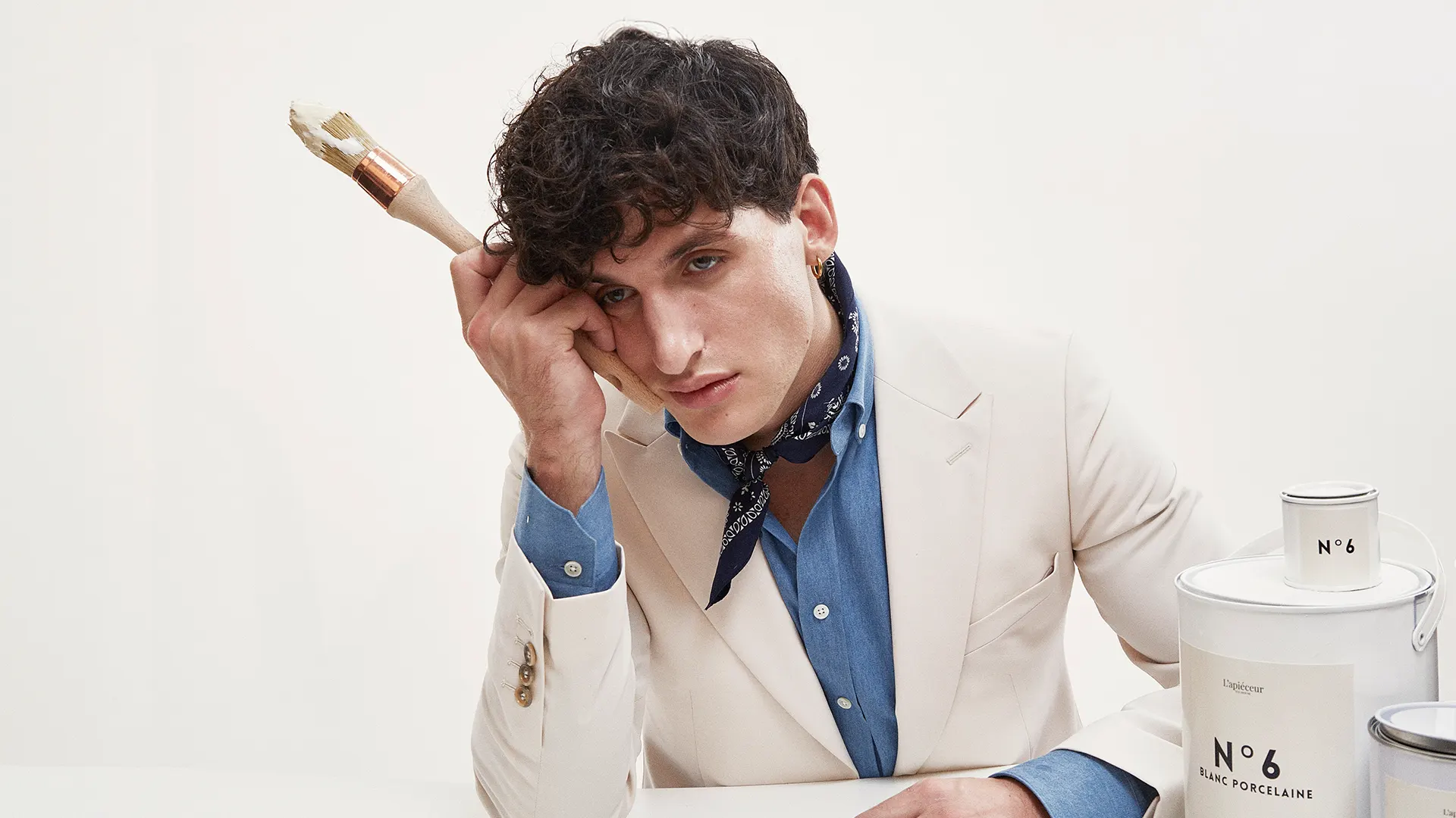 Chemise sur mesure bleue effet denim en twill de coton – 200€