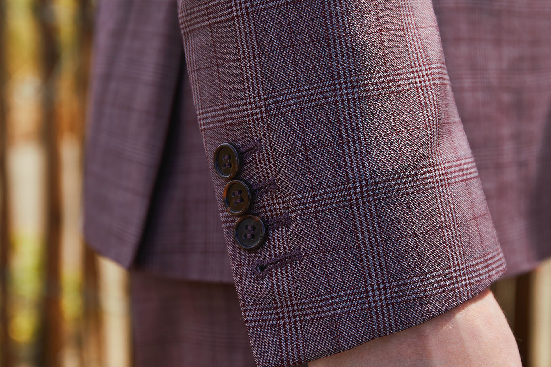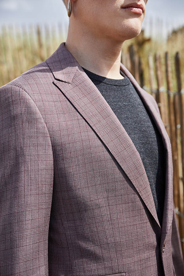 Costume 2 pièces sur mesure avec une veste à col pointe à revers larges, 2 boutons, 2 poches droites à rabats et une poche ticket passepoilée.