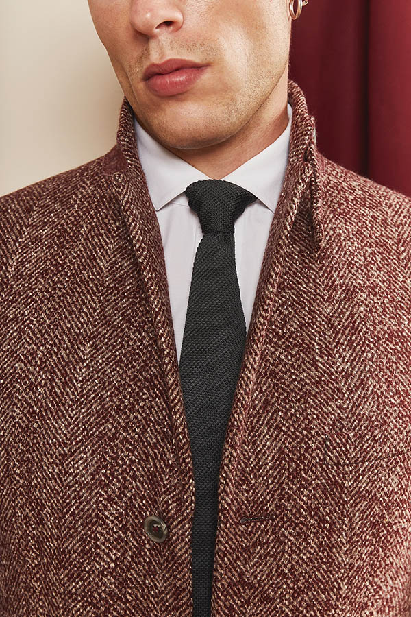 Drap de laine bordeaux chiné à motifs chevron, 100% laine, 650gr/mt