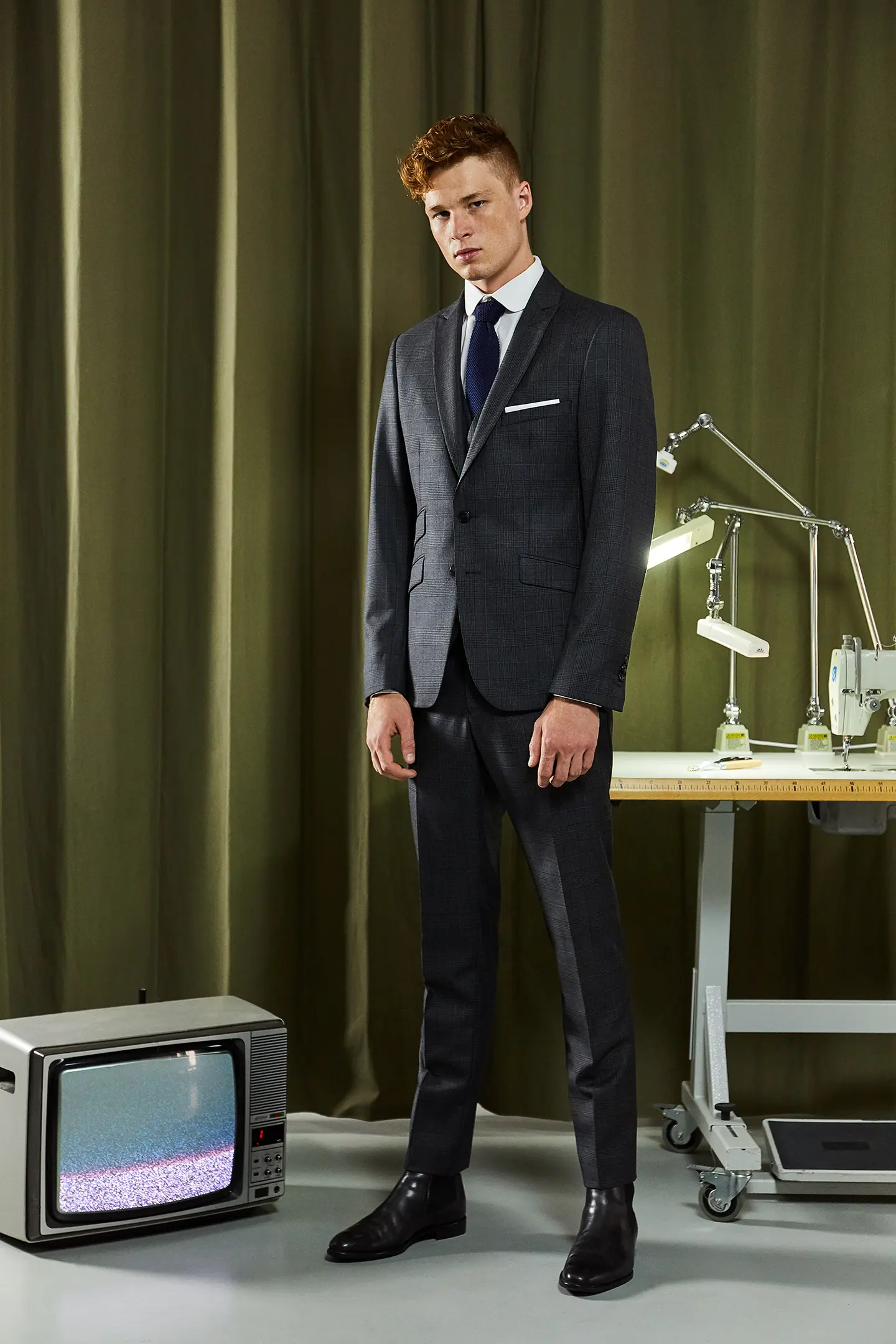 Dans une atmosphère lumineuse et industrielle, entre espace de création et rigueur graphique, cette collection hiver dévoile des costumes homme aux lignes nettes et aux détails subtils.