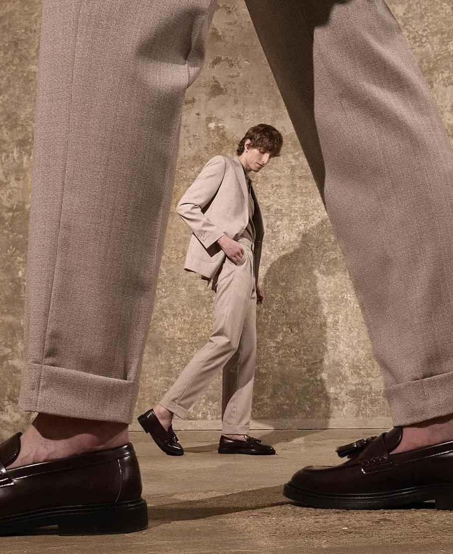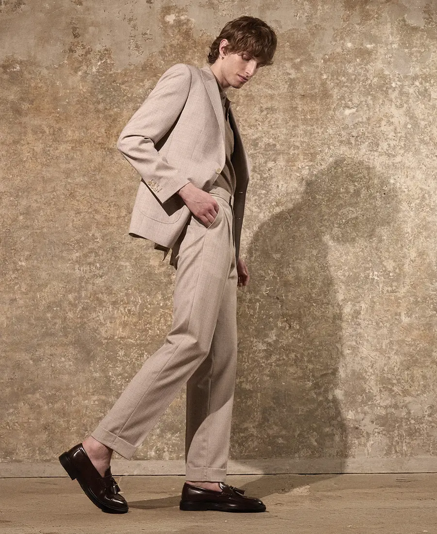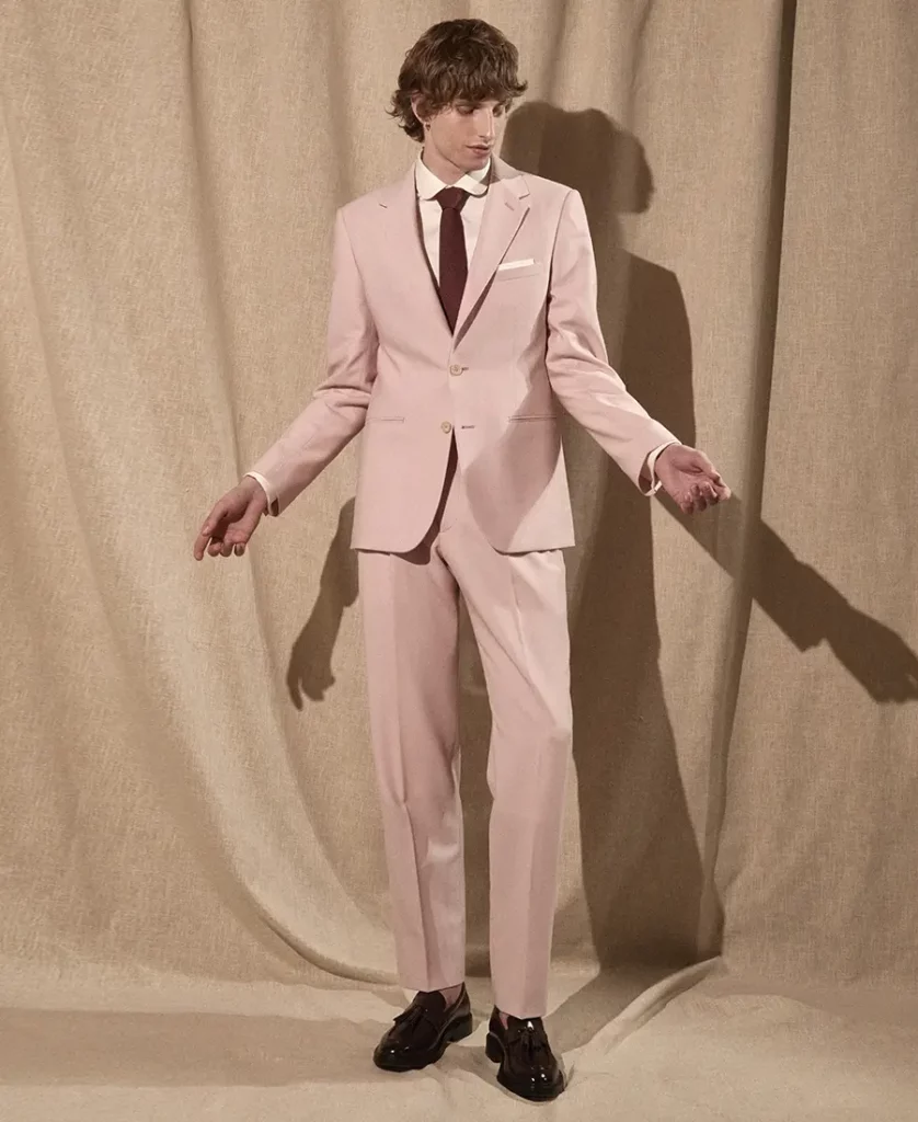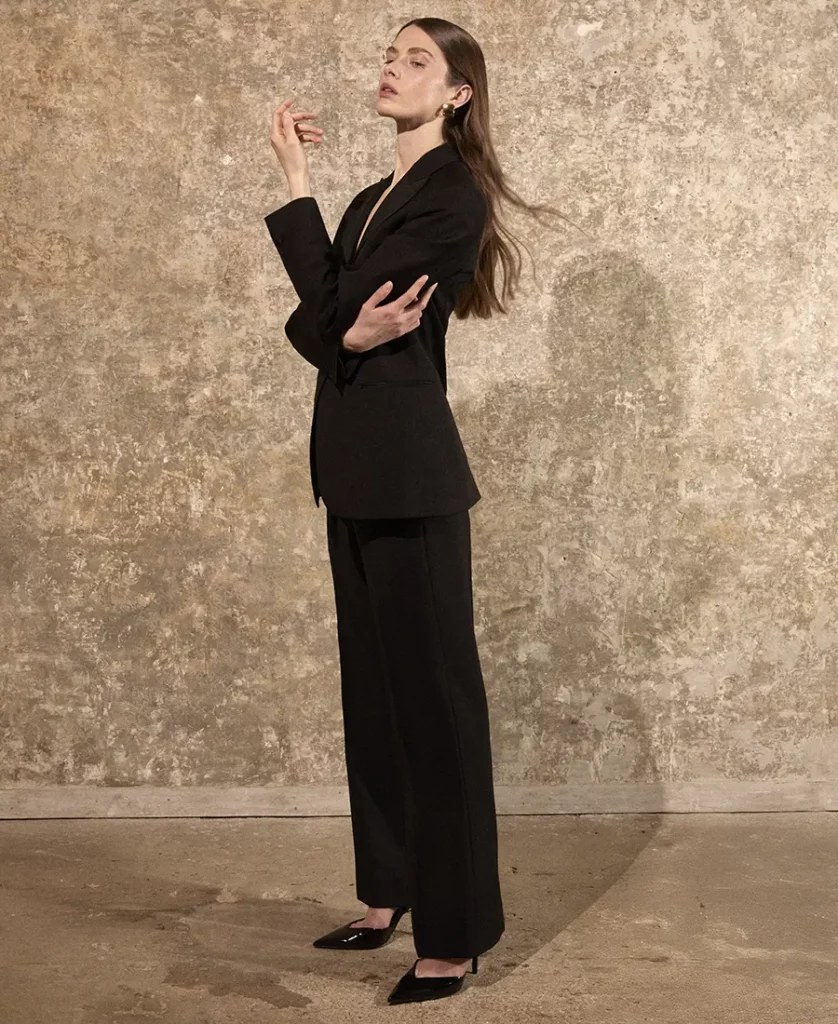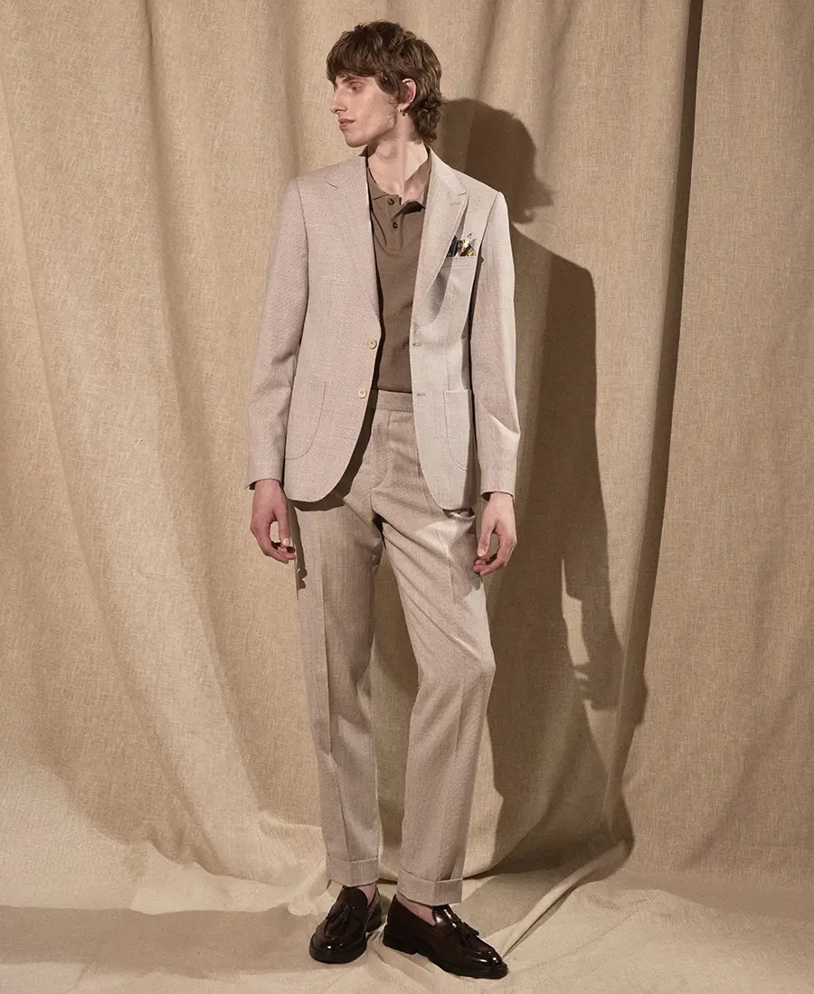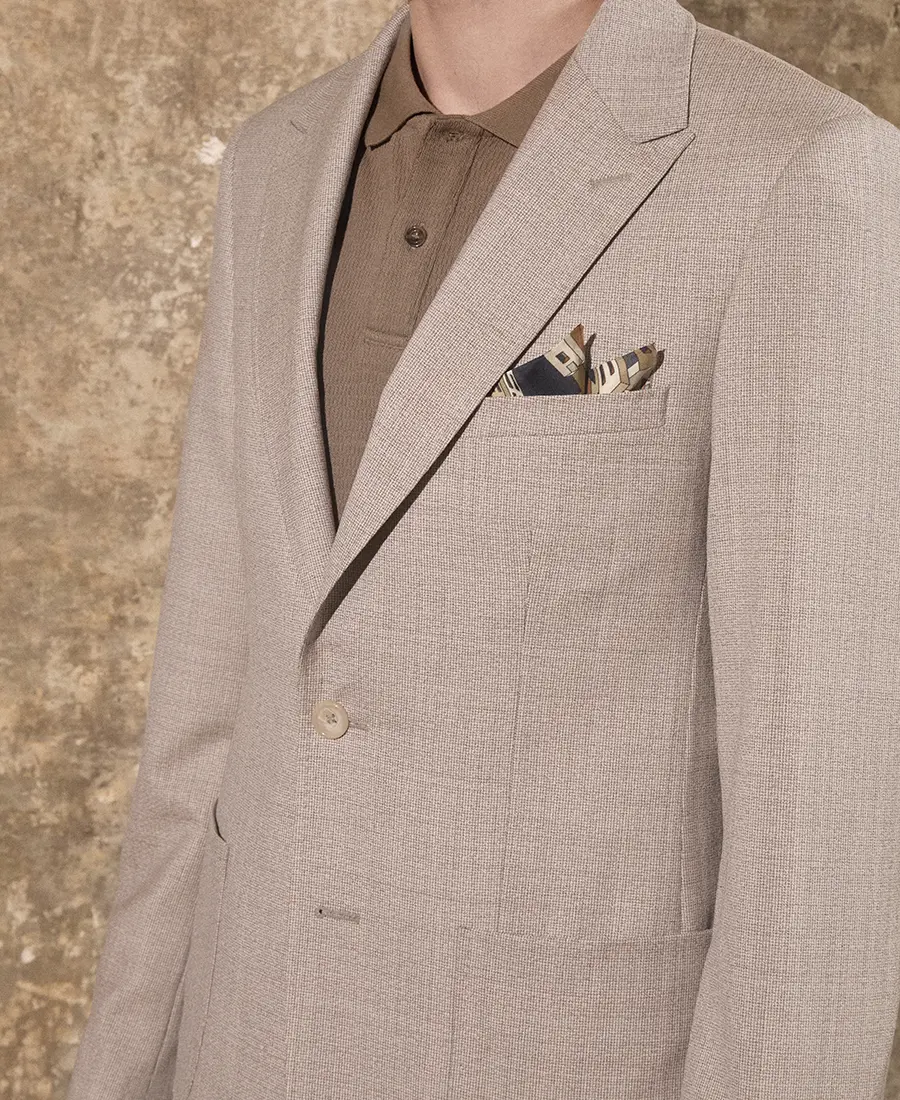 Costume 2 pièces sur mesure avec une veste droite à revers en pointe surpiqué, 2 boutons, 2 poches plaquées – 1090€