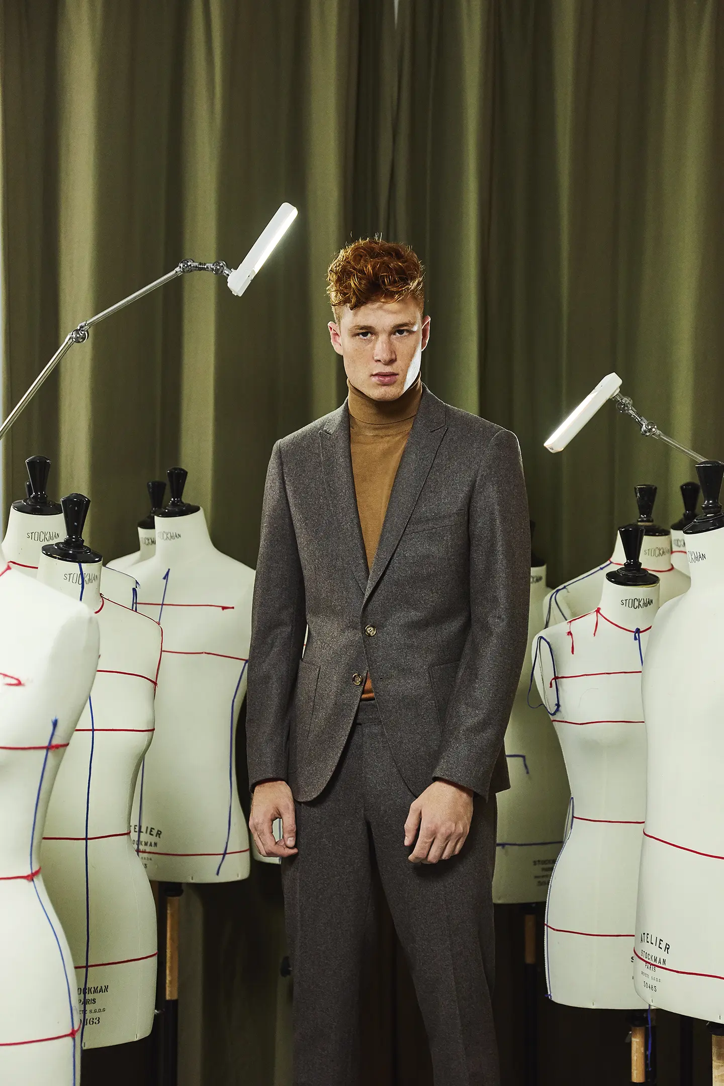 Costume 2 pièces sur mesure avec une veste à col pointe, 2 boutons, 2 poches plaquées.