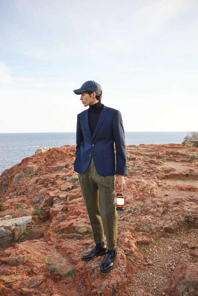 Costume 2 pièces sur mesure avec une veste à col cran ouvert, 2 boutons, 2 poches plaquées à rabats et un pantalon à doubles pinces et revers – 1040€