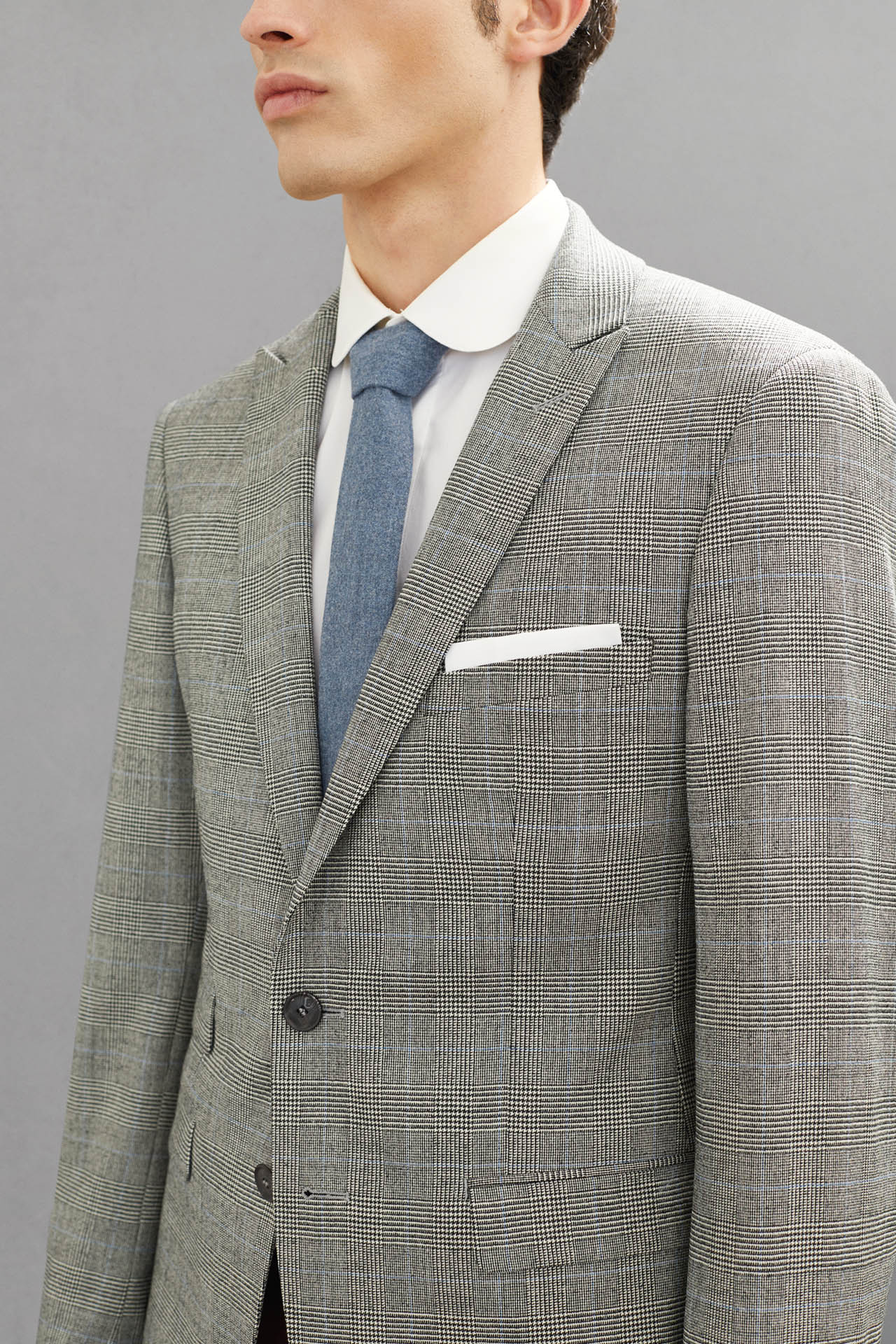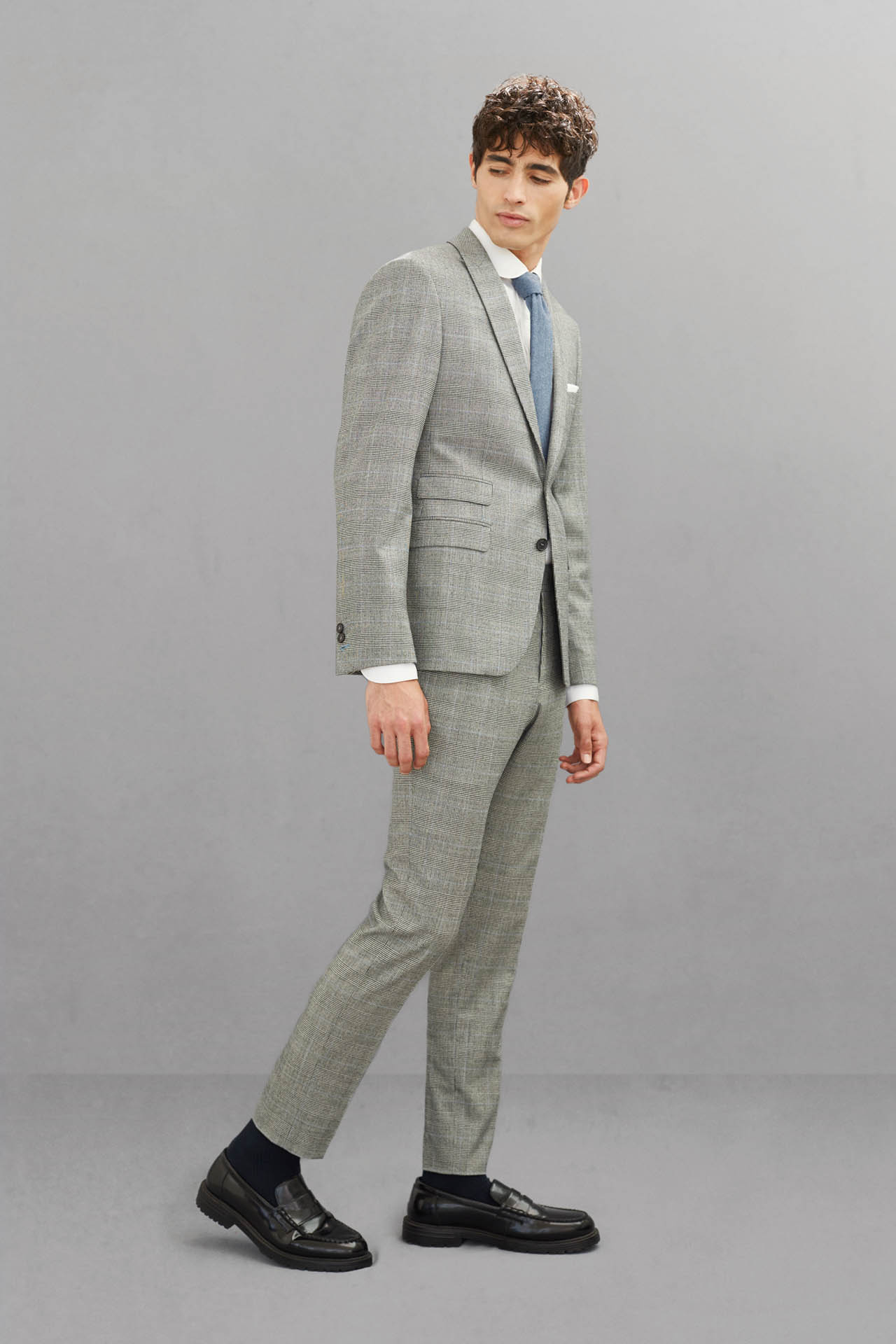 Flanelle de laine grise à motif Prince de Galles, 98% laine 2% lycra, 325 gr/mts