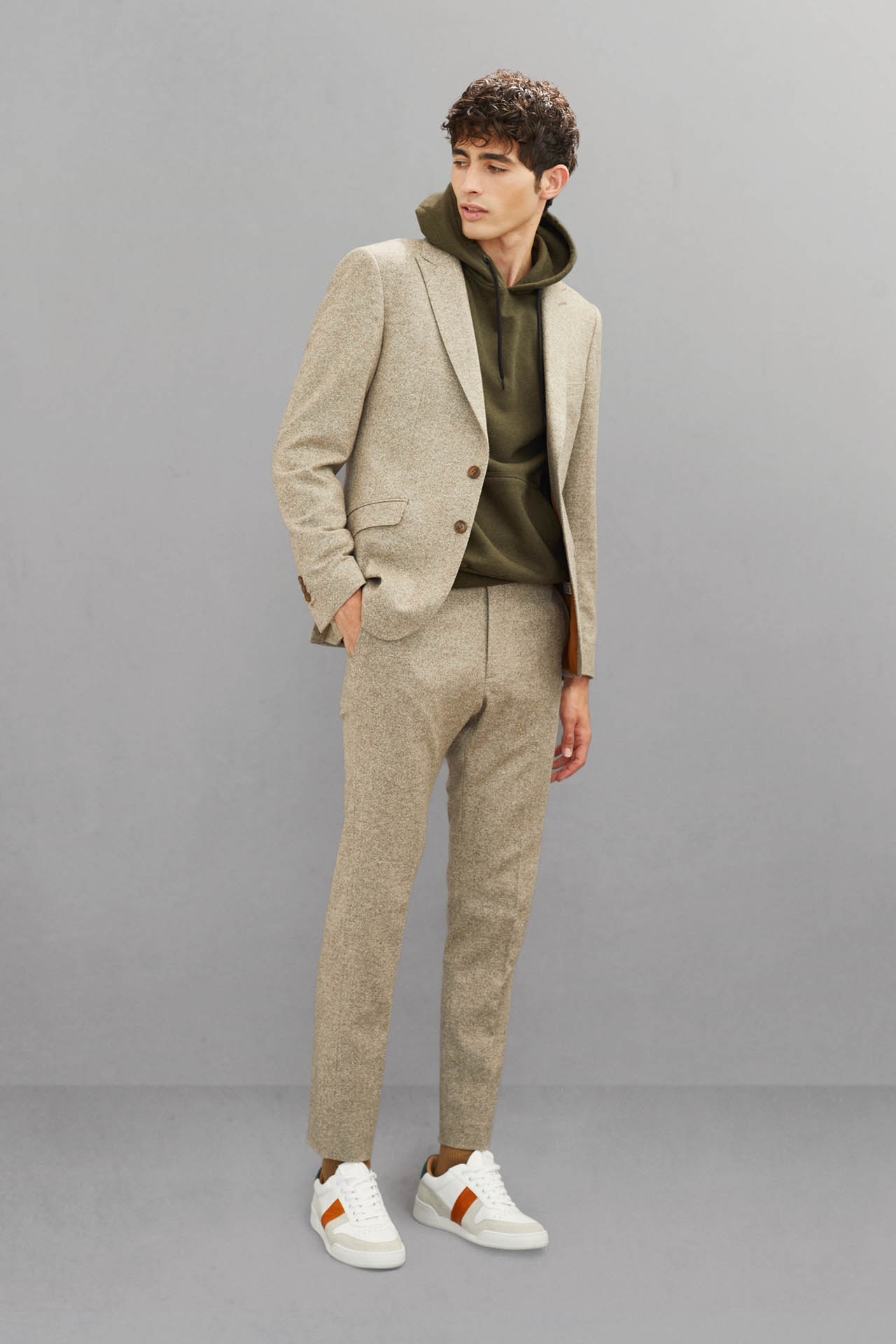 Costume 2 pièces sur mesure avec une veste à col pointe, 2 boutons et 2 poches en biais à rabats – 1140 €