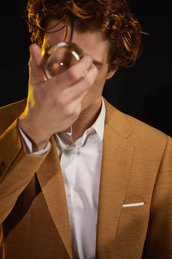 Costume sur mesure 2 pièces avec une veste à col droit surpiqué, boutons nacrés et 3 poches plaquées.