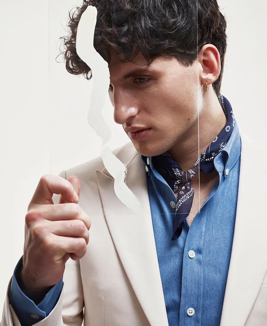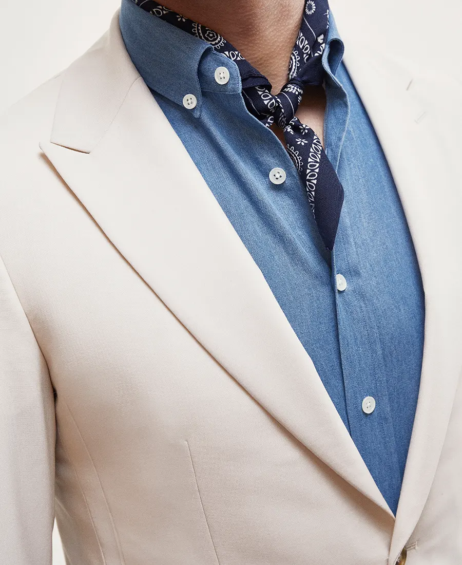 Chemise sur mesure bleue effet denim en twill de coton – 200€