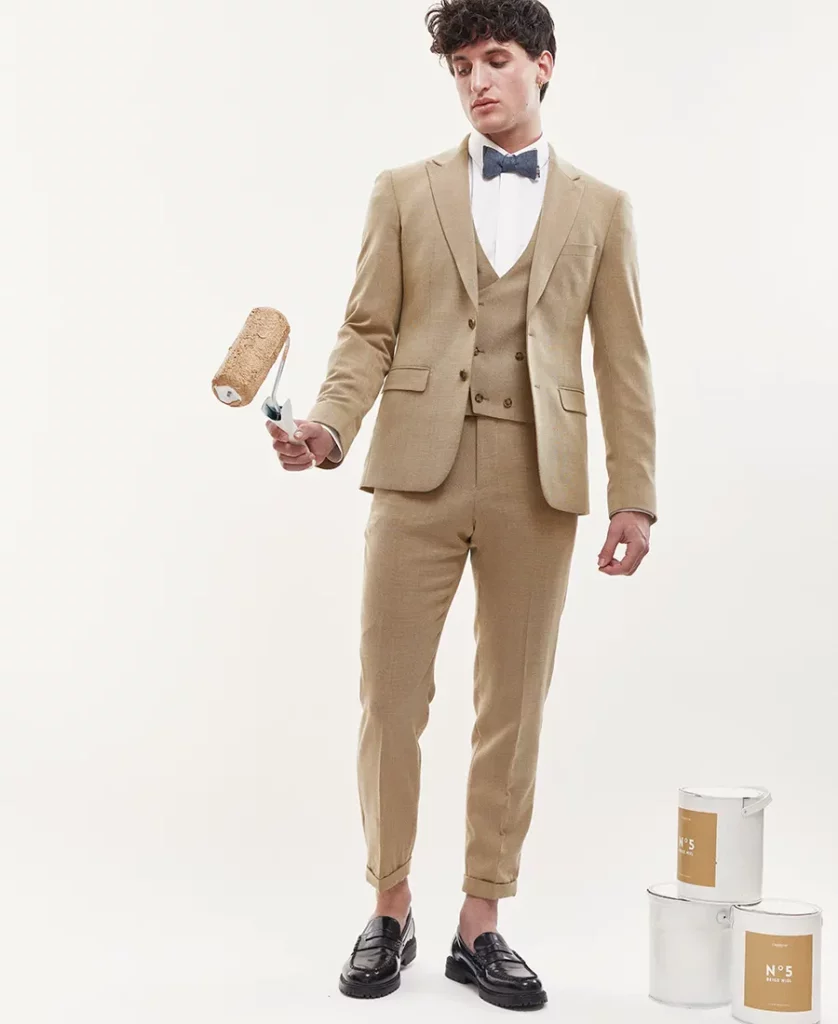 Costume 2 pièces sur mesure avec une veste à col pointe, 2 boutons, 2 poches droite à rabats – 1040€
