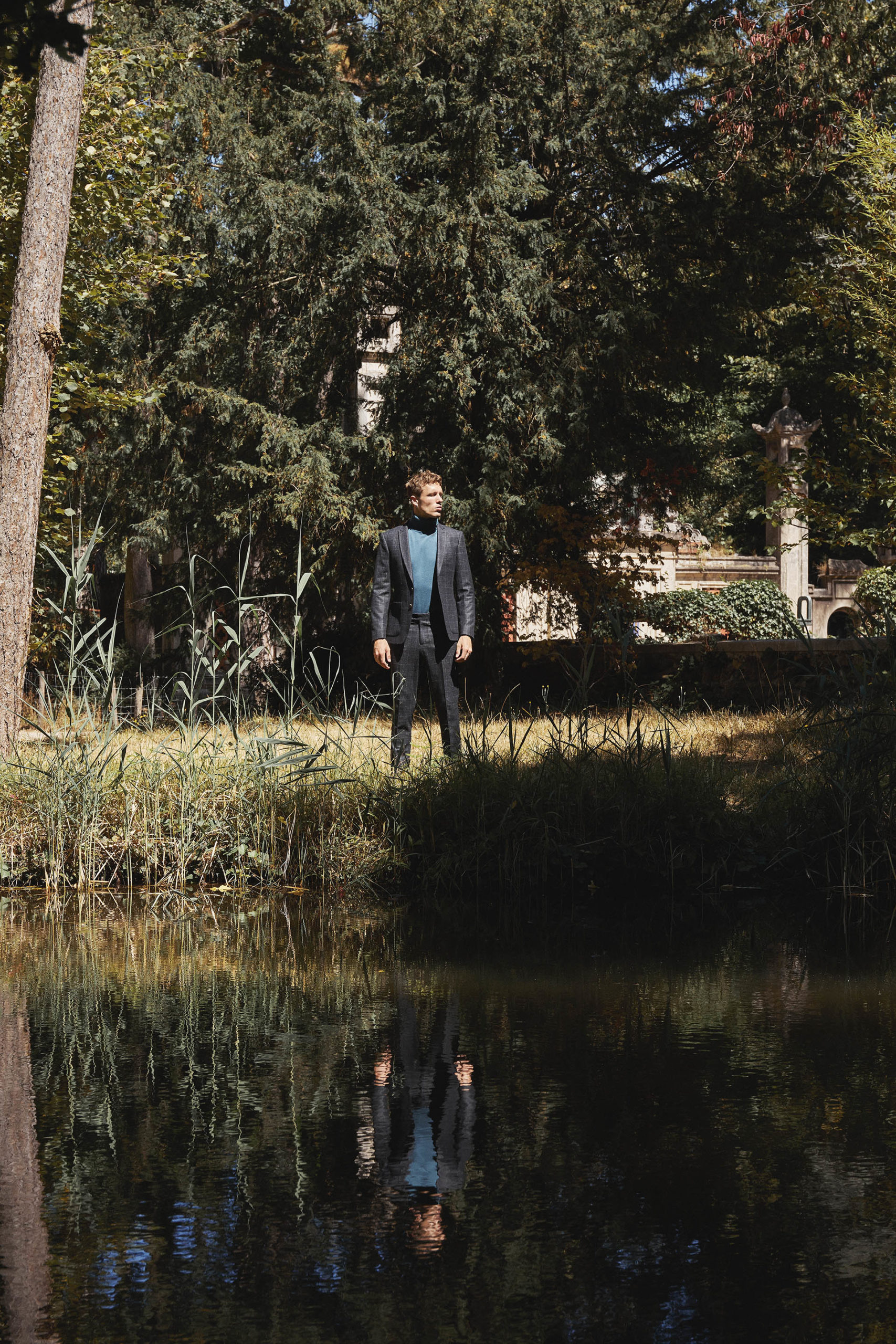 Costume 2 pièces sur mesure avec une veste à col pointe, 2 boutons et 2 poches plaquées