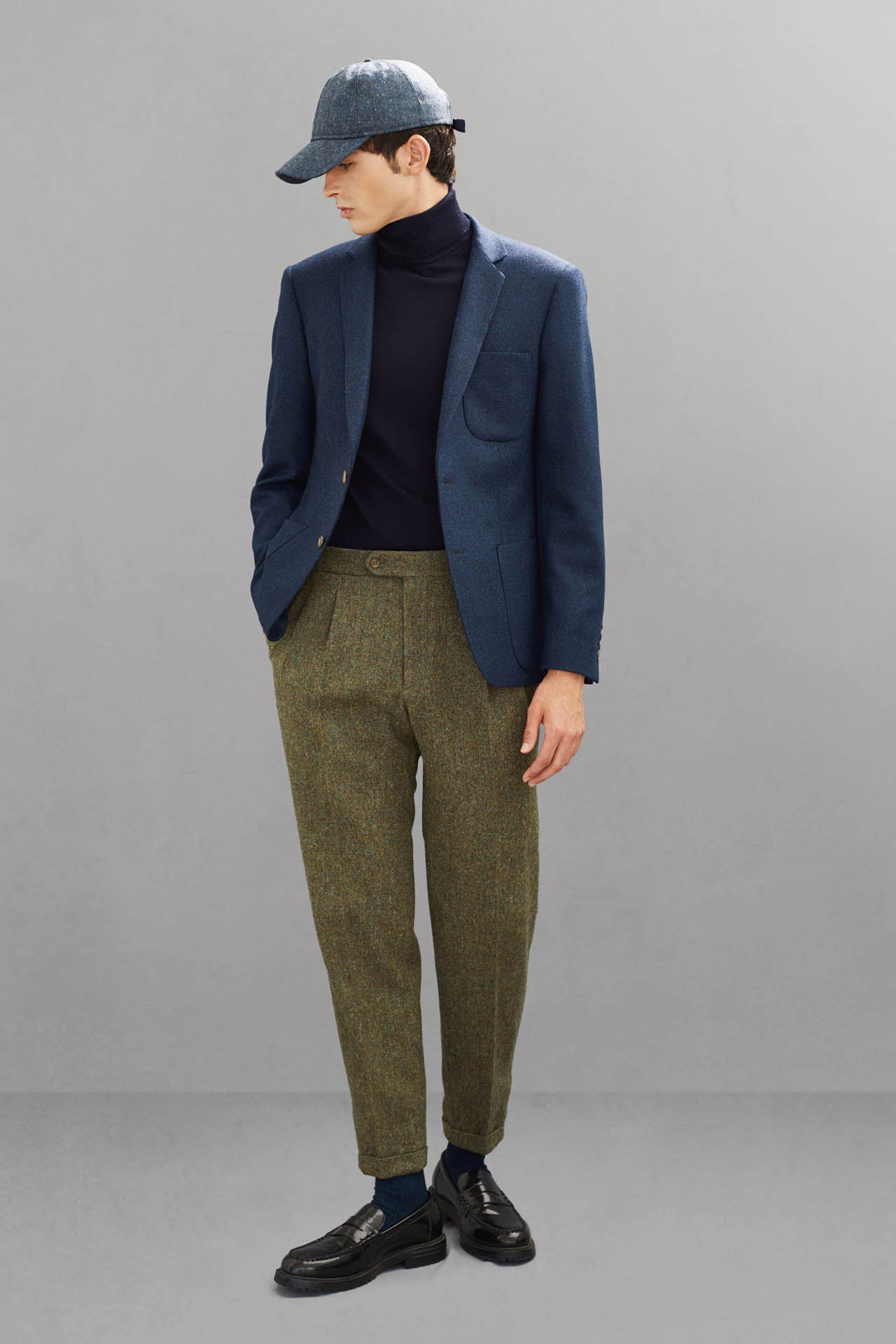 Pantalon sur mesure avec pattes de serrage boutonnées, poches en biais, doubles pinces à et revers – 340 €