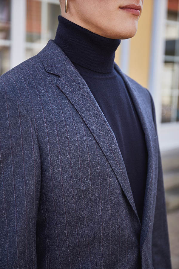 Veste sur mesure avec un col droit, 2 boutons et 3 poches plaquées.