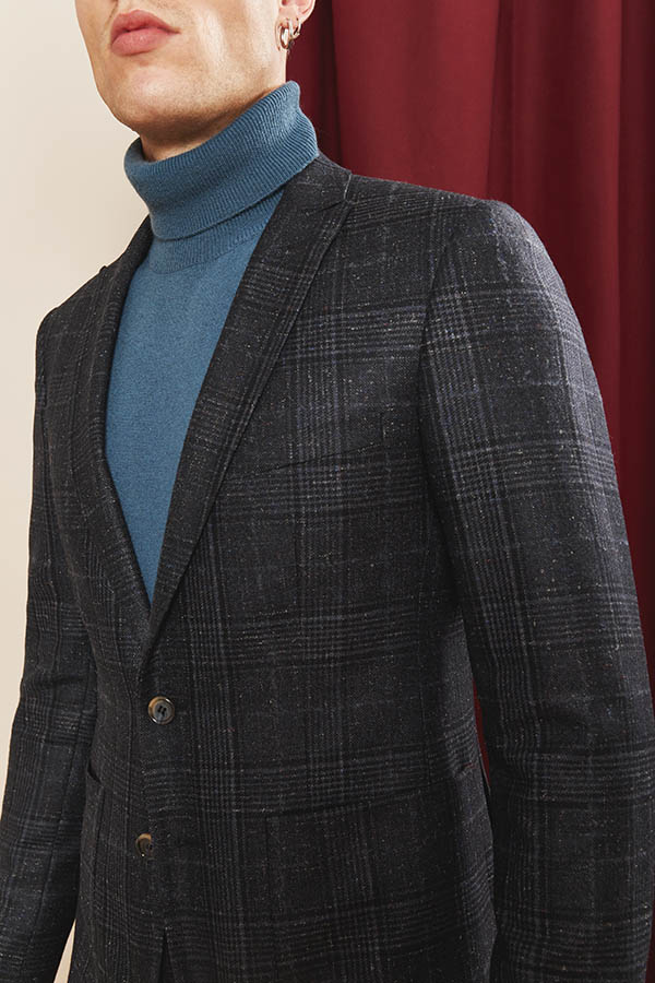 Costume 2 pièces sur mesure avec une veste à col pointe, 2 boutons et 2 poches plaquées